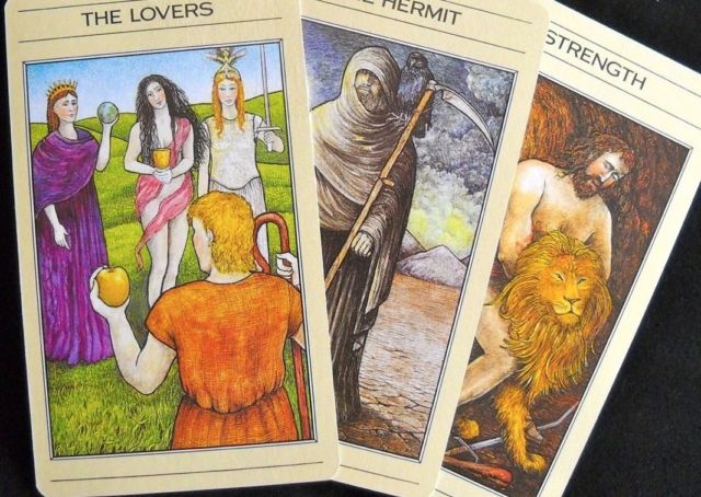 Tarot – a collection of 78 cards depicting various archetypes, which a reader uses to gain insight into the physical, psychological and metaphysical circumstances of the querent. There are hundreds of differently-themed tarot decks; my personal favourite is the Mythic deck, which is based on stories from Greek mythology.